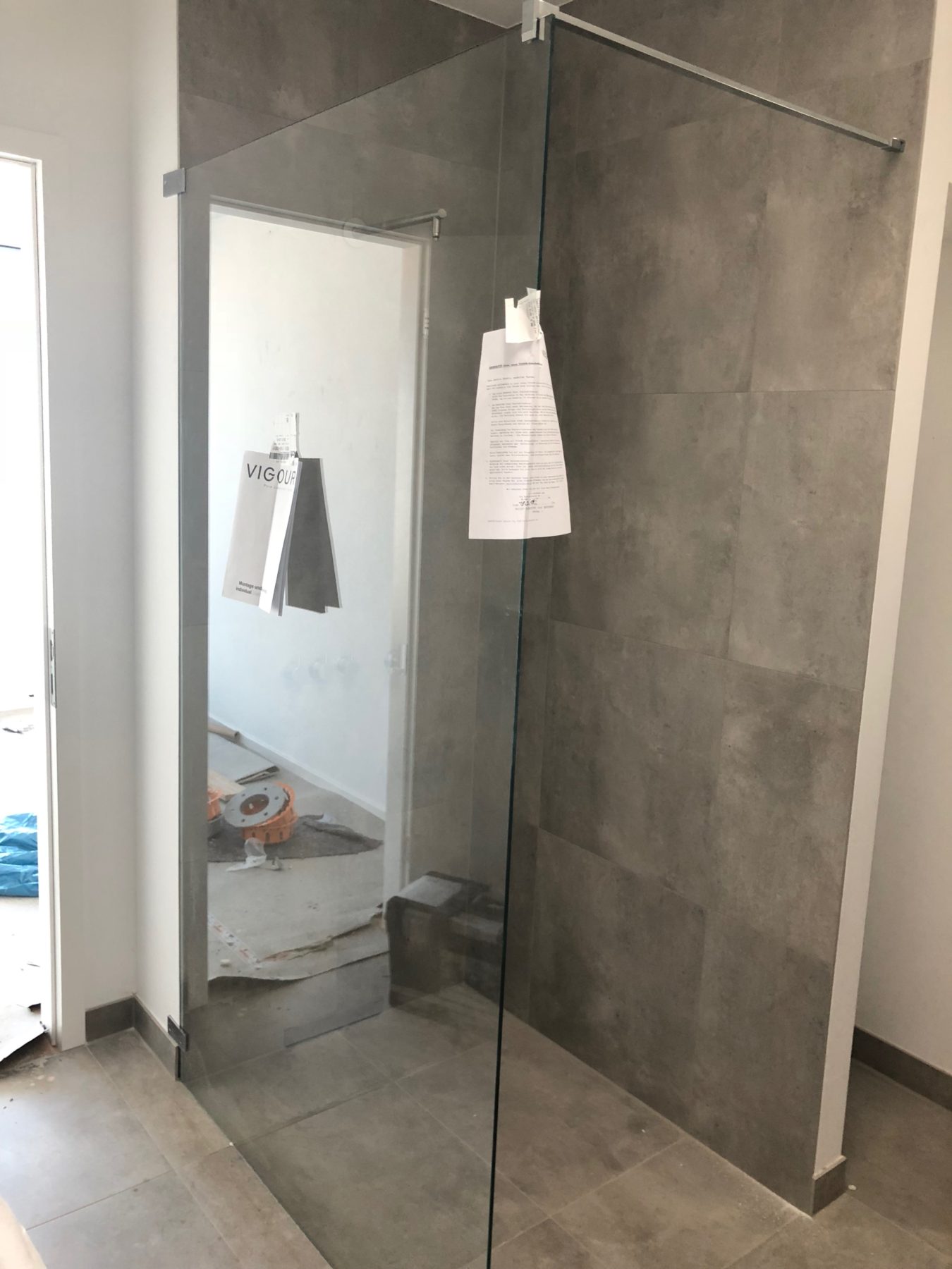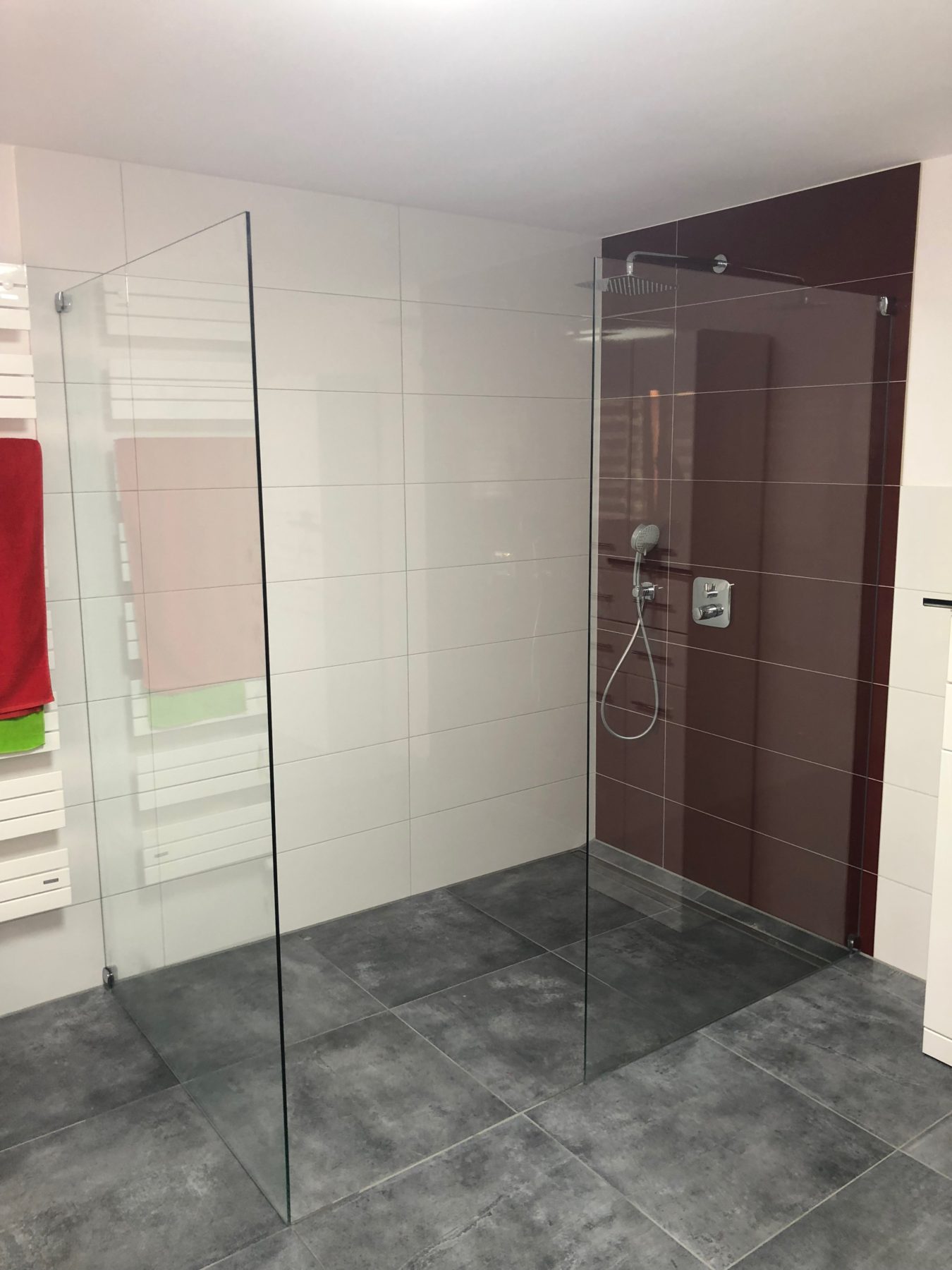 Walk In Duschlösungen bestehen meist aus nur aus einer freistehenden Glaswand, die als Spritzschutz dient. Der offene, türlose Einstieg in die Dusche ist häufig in Hotels zu finden, aber auch in barrierefreien und seniorengerechten Bädern.